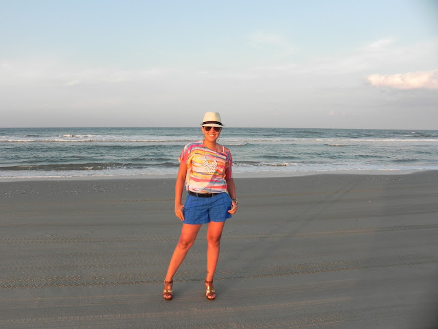Hey Gals! sorry I've been MIA this past week I was on a much needed vacation and I needed to take a break from everything. My intention was to takes lots of pictures for my outfit posts but I was enjoying my time so much that I hardly had the time to take outfit pics plus I was in a bathing suit almost the entire time. I was able to get 2 outfits this was one of them. I paired a simple pair of black short with a bright top and my favorite gold wedges I was going to wear this outfit out but 1 yr old son decided to spill milk on my top (gotta love them) so I changed the top for my night out.
